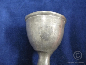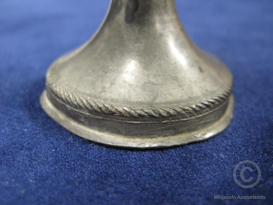 Ferðakaleikur (Viaticus). Hlutinn átti Sigfús Sigfússon, bóndi á Skjögrastöðum í Vallahreppi, faðir gefanda. Ferðakaleika tóku prestar með sér til guðsþjónustu. Oft voru þeir í öskjum. Kaleikurinn er lítill og með smá flúri efst á staupinu og reipkanti neðst á fætinum. Svolítið beyglaður af langri notkun.