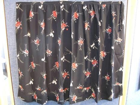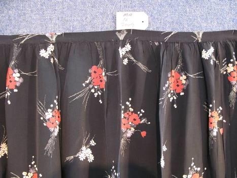 Svört upphlutssvunta úr nælonefni með rauðum, hvítum og fjólulituðum blómum. Tengdamóðir gefanda, Margrét Þorsteinsdóttir á Víðivöllum, átti kjólinn.