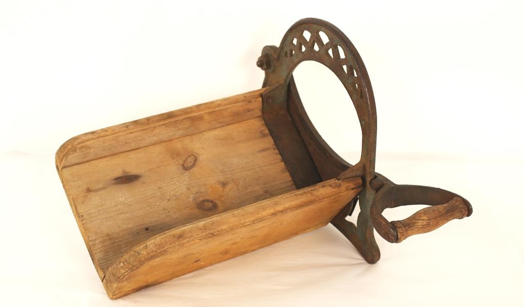 Orðinn ryðgaður og málningin flögnuð af en viðurinn heill. Úr búi Sigbjörns Björnssonar (f.15.10.1866, d. 11.11.1940), föður gefanda.