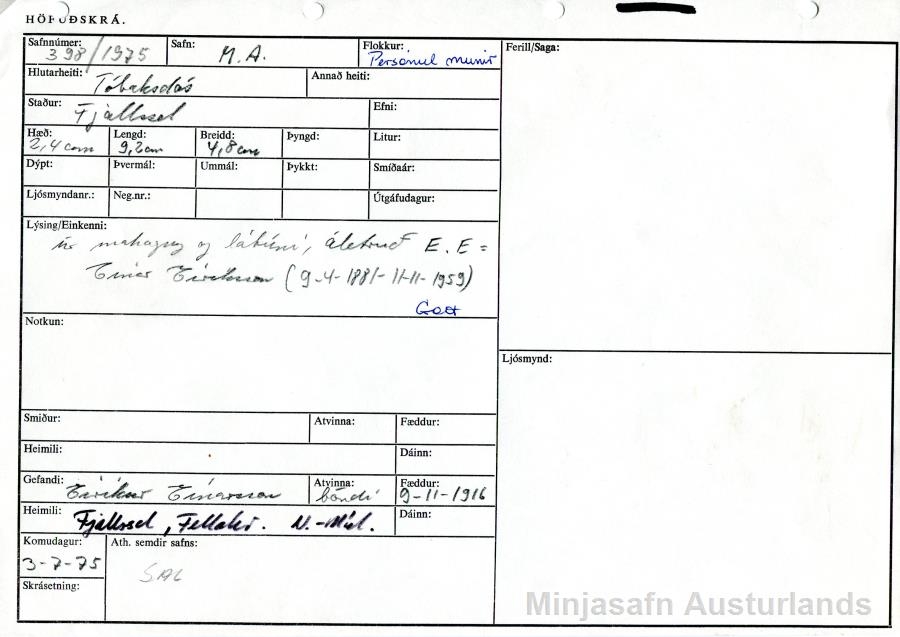 Donor: Eiríkur Einarsson