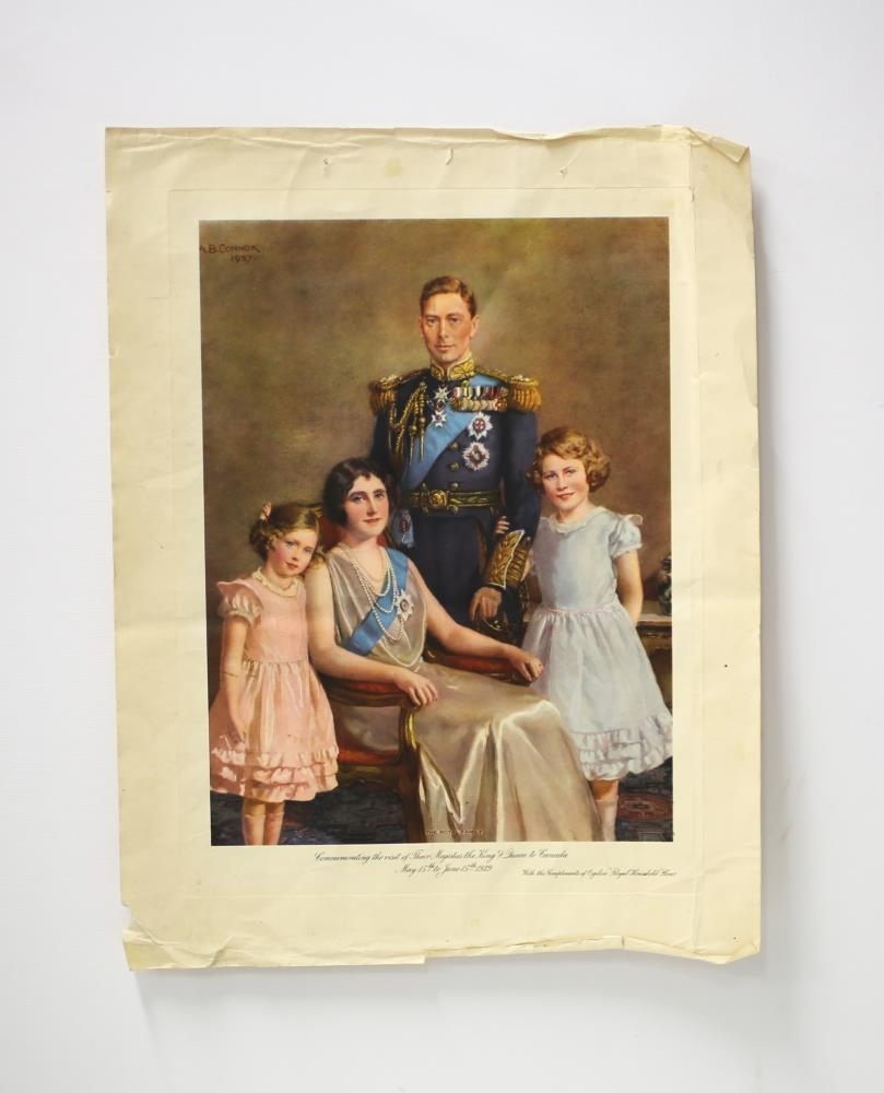 Myndin er af Elísabetu Englandsdrottningu með foreldrum sínum og systur. Frá Hafrafelli.