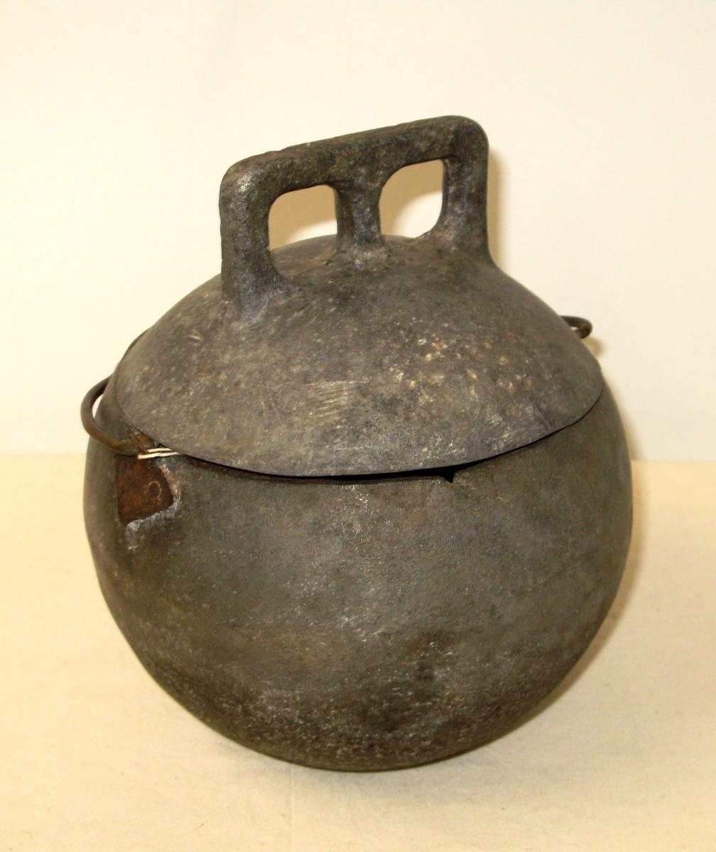 Pottur, heimatilbúinn. Netakúla úr sinki hefur verið söguð í sundur. Handfang líkt og á fötu búið til úr koparteini. Laust af öðrum megin. Frá Hofi.