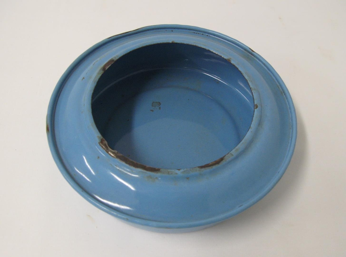 Bláemeleraður hrákadallur, svolítið farið að kvarnast upp úr emeleringunni. Bakkinn er meðal annars frægur fyrir það að Sr. Þórarinn Þórarinsson á Valþjófsstað spýtti oft í hann þegar hann kom í Skeggjastaði. (G.H.)