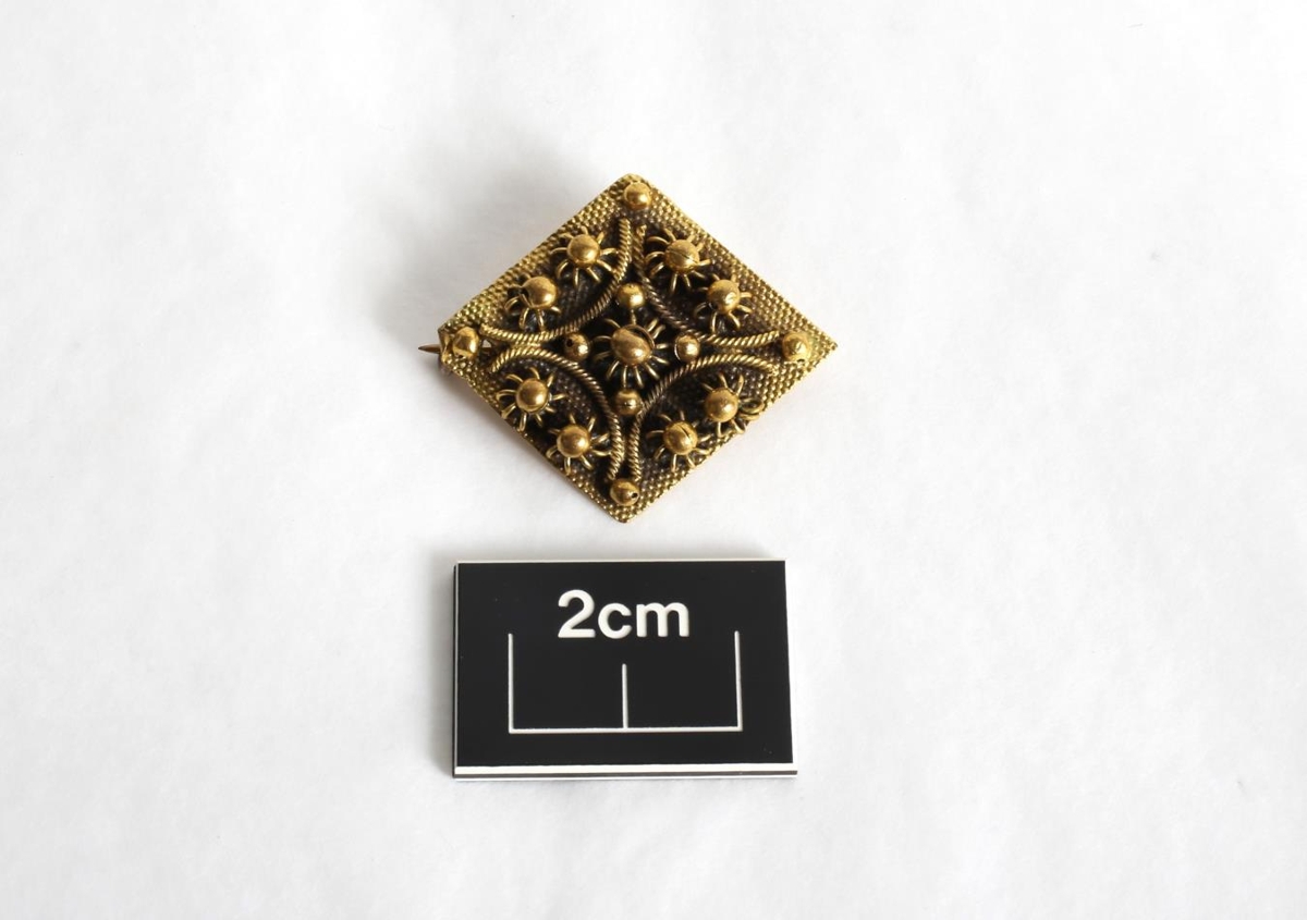 Lítil tígullaga næla. Sérstakt munstur er ofan á sléttum fleti, það eru snúnar snúrur sem lagðar eru í hálfhringi og inn í hverjum hring eru tvær kúlur sem sitja á víravirki. Inn í miðju er ein stór kúla og fjórar litlar. Ólafía fann næluna á eyðibýlinu Finnstaðaseli í Eiðaþinghá og lét gylla hana upp hjá gullsmið. Samkv. Sveitum og jörðum í Múlaþingi II bindi bls. 232 var Finnstaðasel í eigu Soffíu Þórðardóttur sem var dóttir Þórðar Árnasonar frá Finnstöðum sem virðist vera síðasti ábúandinn frá 1936 - 1956. Soffía var húsfrú í Fögruhlíð Hlíðarhreppi.