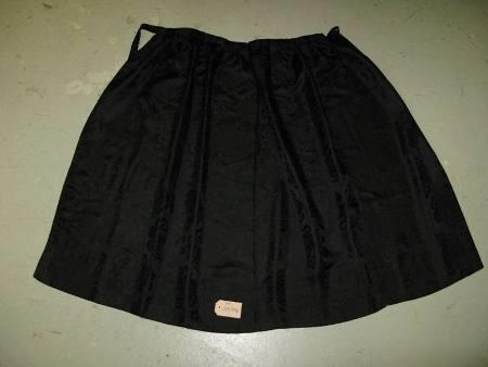 Svört svunta úr svartrósóttu efni. Kom frá Brekku í Hróarstungu.