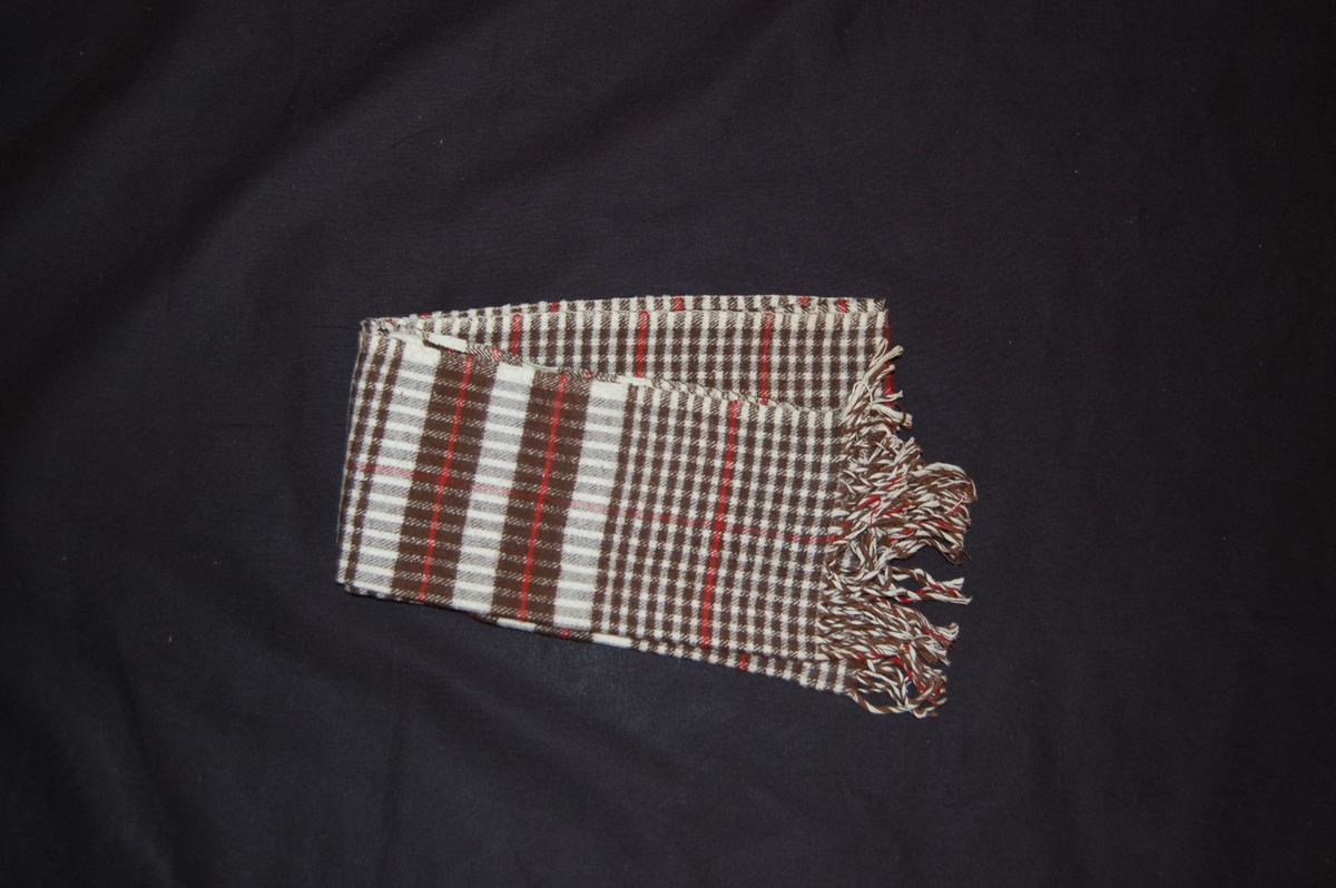 Fín- og grófköflóttur trefill með kögri á endunum. Úr dánarbúi Jóns Björnssonar, Hofi í Fellum.
