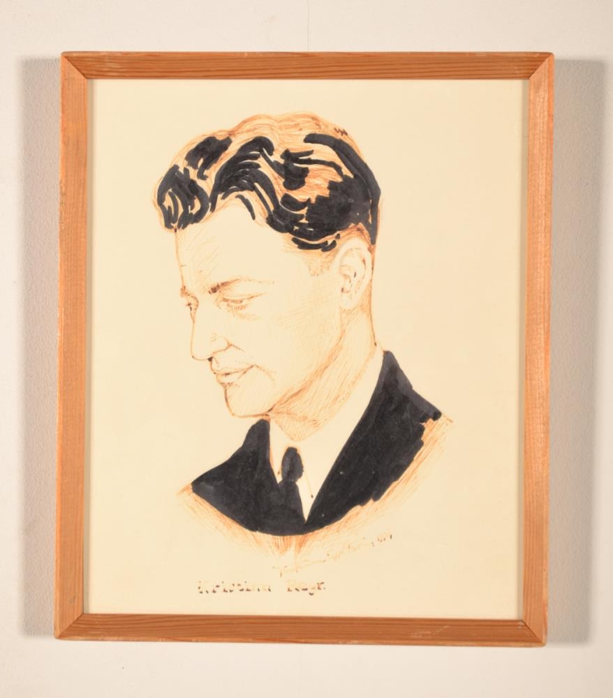Innrömmuð svart/hvít teikning af Kristni Reyr, skáldi