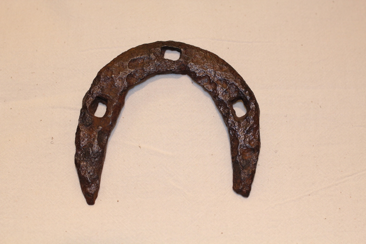 Mjög gömul skeifa sem er heimasmíðuð með þremur götum þar af einu á tánni. Fundin á afrétt nálægt Hornbrynju.