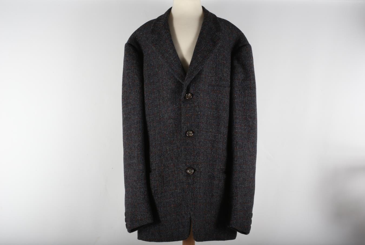 Yrjóttur fremur dökkur karlmannsullarjakki. Úr dánarbúi Sigrúnar Guðmundsdóttur og Ármanns Jónsson á Vaði í Skriðdal. Til skjóls og skrauts. Framleiðandi: Gefjun Reykjavík.