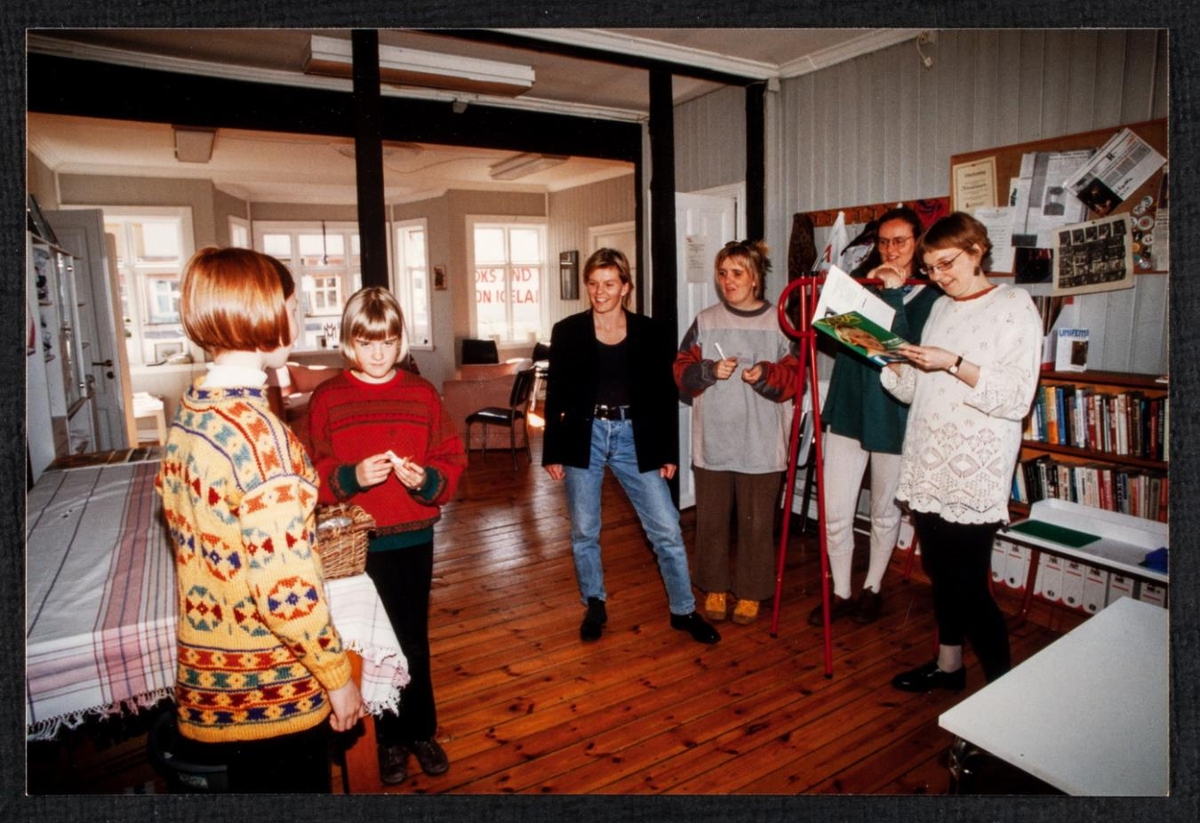 Vera - Happdrætti 1994. Tvær stelpur draga í happdrætti. Konur fylgjast með.