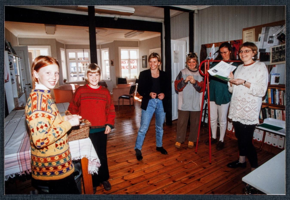 Vera - Happdrætti 1994. Tvær stelpur draga í happdrætti. Konur fylgjast með.