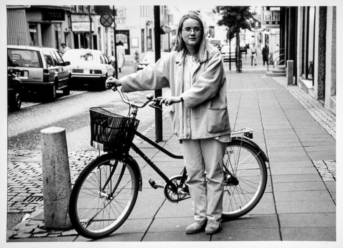 Vera - Happdrætti 1994. Kona með reiðhjól. Guðrún Vala Elísdóttir.