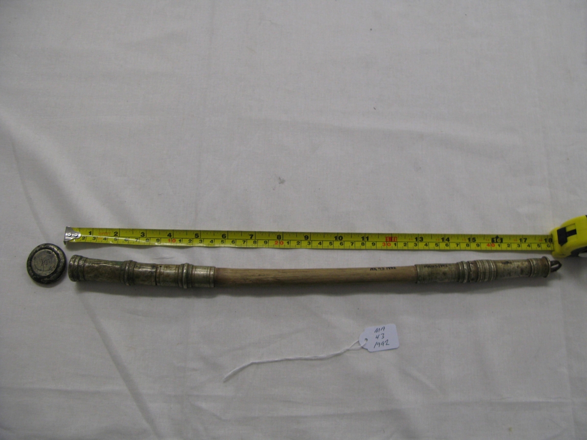 Silfurbúin svipa, stór með þremur hólkum og bambus á milli. Áletrað á hnúðinn "Jón". Hnúðurinn dottinn af. Svipuna átti fyrst Jón Jónsson, langafi gefanda, en afi gefanda, Guðmundur, átti síðan svipuna og fluttist með hana úr Suðursveit.