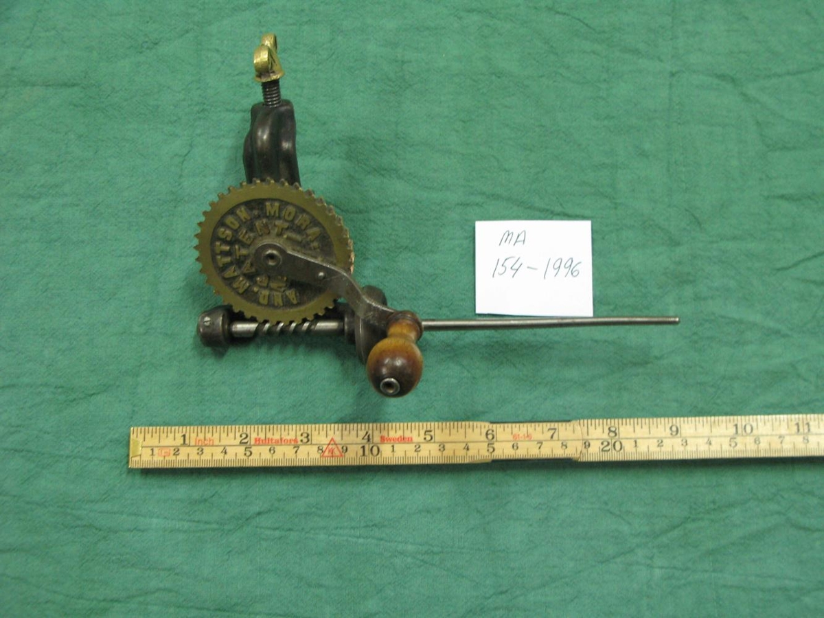 Svart, lítið áhald með handsnúinni sveif öðrum megin og löngum staut fram úr til að setja spólur upp á svo hægt sé að vinda garn upp á þær. Úr eigu Guðrúnar Pálsdóttur, seinni konu Guttorms Pálssonar frá Hallormsstað. Hún sótti námskeið í vefnaðarfræðum um miðjan þriðja áratuginn á Lýðskólanum í Hilleröd.