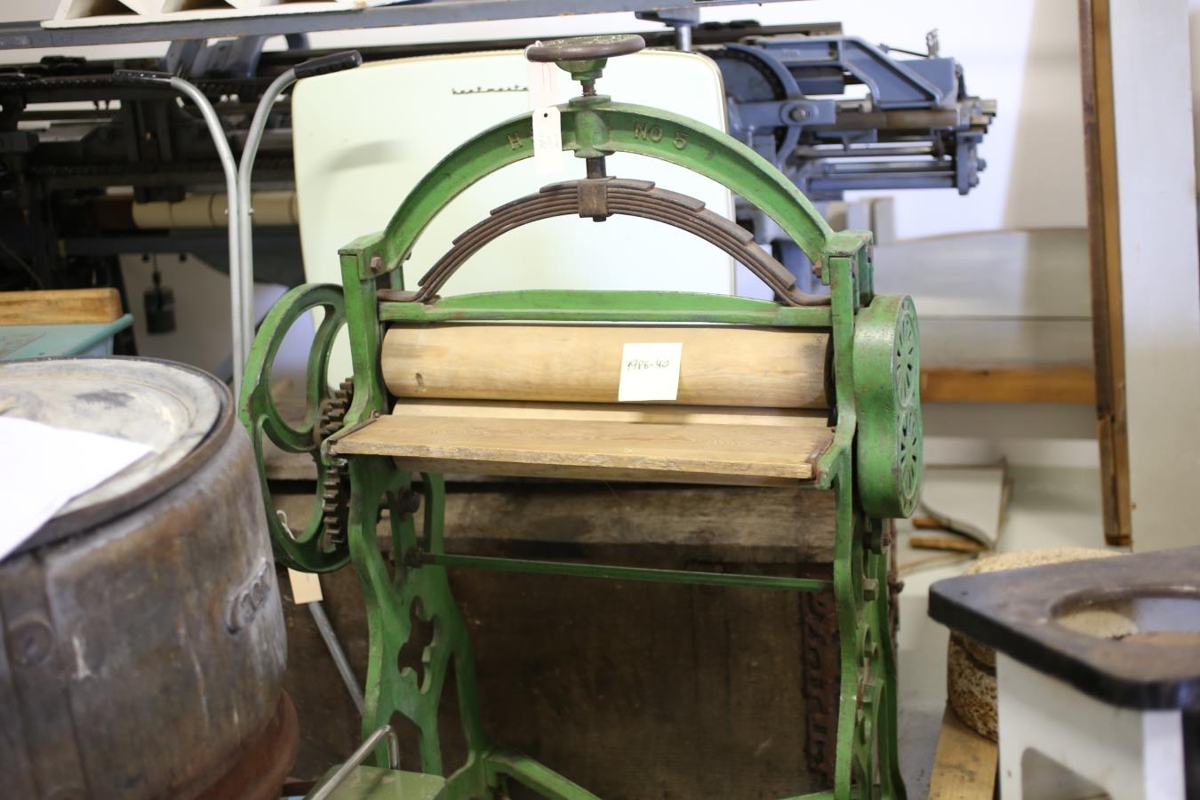 Grænmáluð nr. 5, stórt tannhjól á annarri hlið, tvö lítil í hlíf á hinni. Lítið hjól ofan á. Var í Húsmæðraskólanum á Hallormsstað þegar Hrafn kom þangað. "Aðaltækið" skv. Hrafni. Hann kom árið 1932.