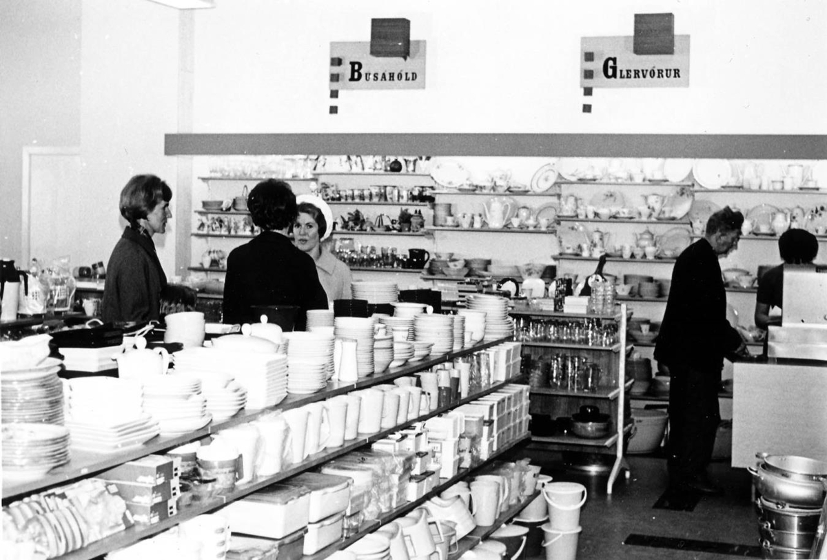 Húsmæður taka tal saman í Ján- og gler KEA.