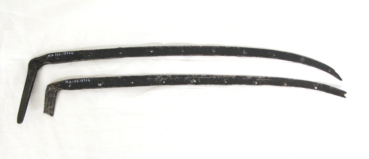 Tvö stykki af ljábökkum, 10 gata frá Höfða. Smíðaðir af Jónasi Kr. Jónssyni bónda á Höfða.