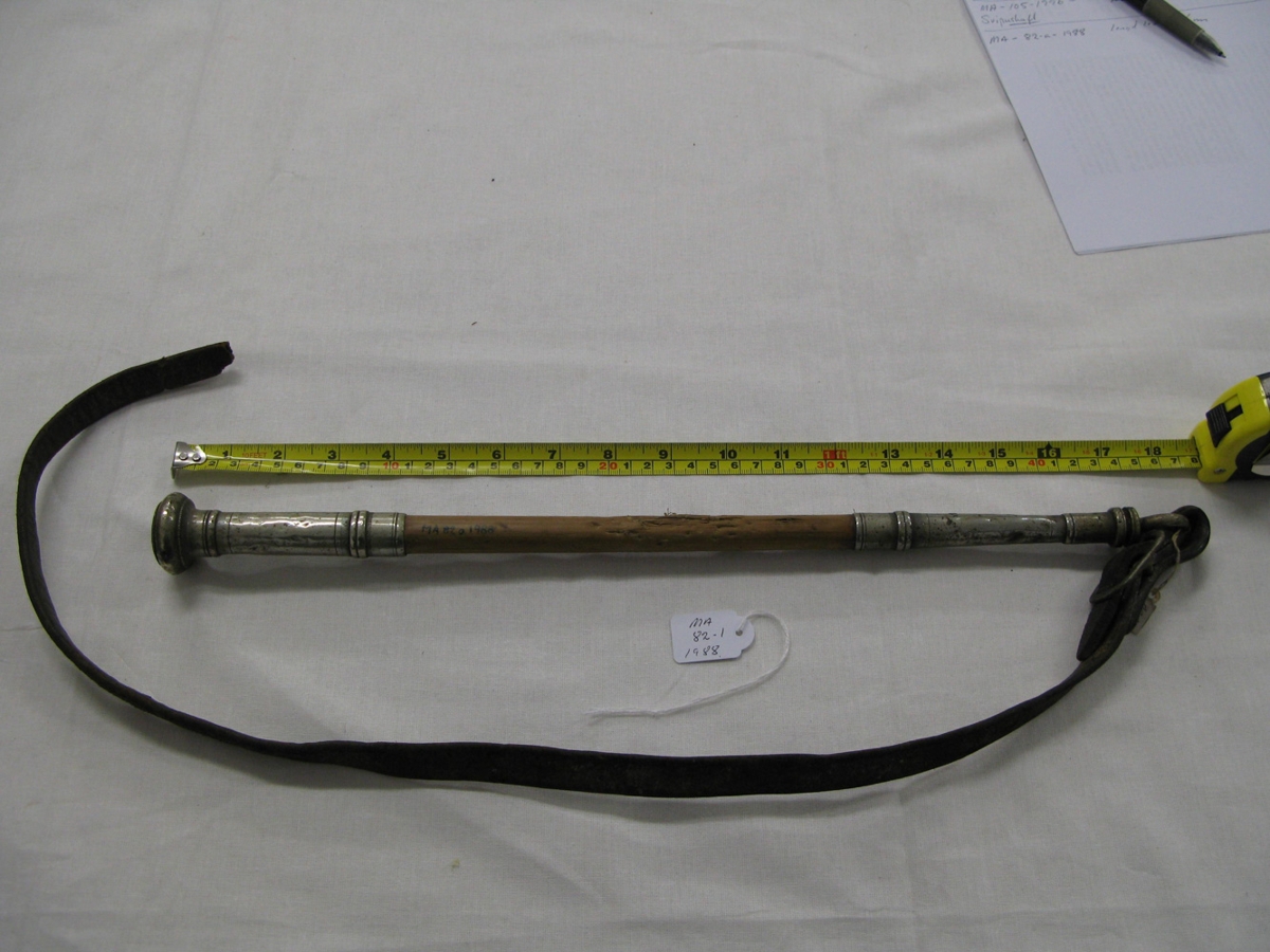 Silfurbúið með tveimur hólkum, bambus á milli. Lítillega útflúrað með riflum. Fangamark "J.K.J.".