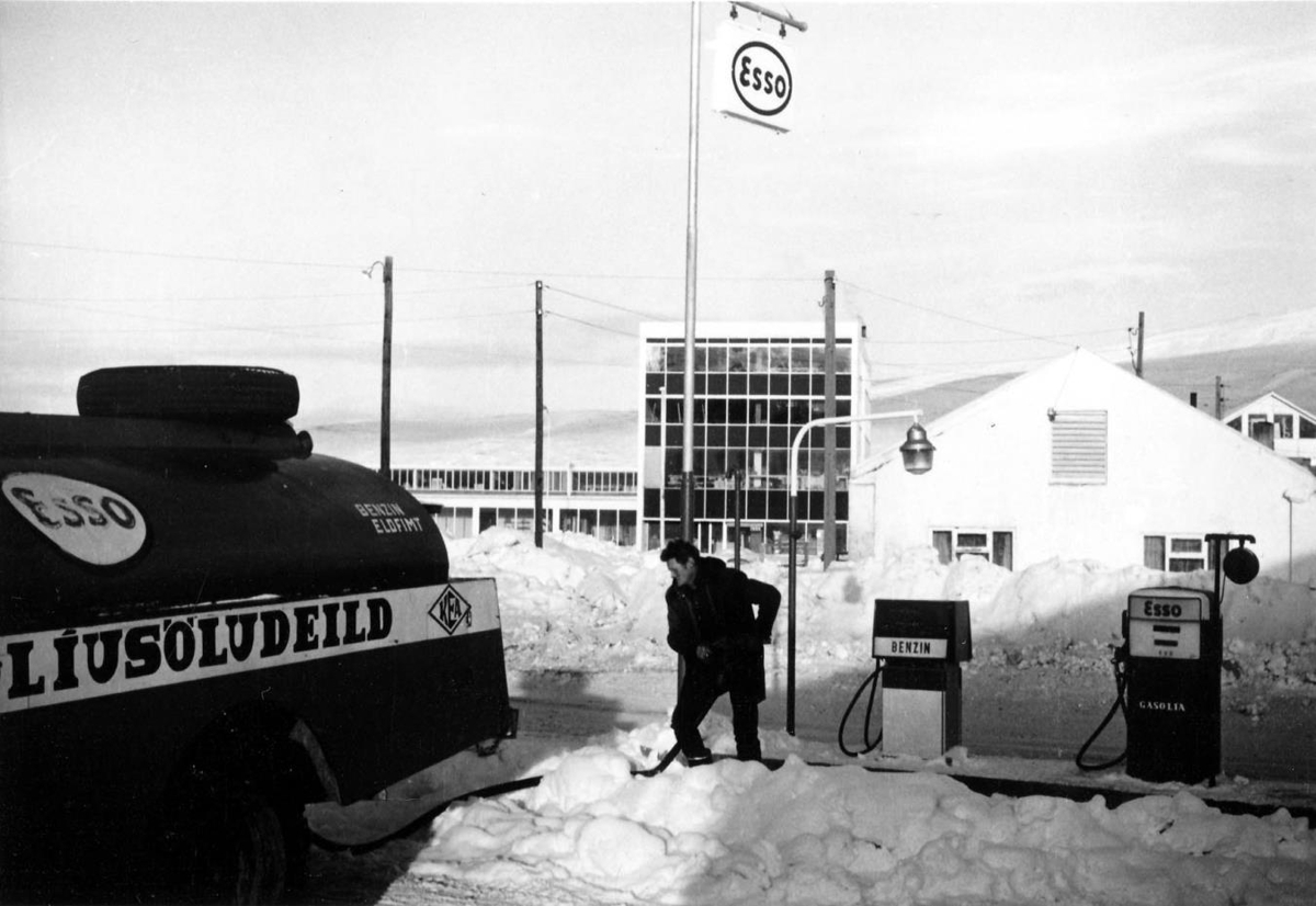 Haukur hjá Olíusöludeld KEA afgreiðir bensín á tankana hjá Þórshamri hf.
