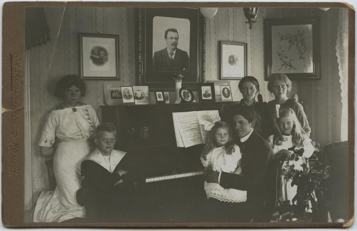 Heimili Jóns Steinþórs Norðmann kaupmanns og Jórunnar Einarsdóttur. Stór mynd af honum hangir á vegg yfir póanói og eru Jórunn ekkja Jóns og börn þeirra við píanóið.
