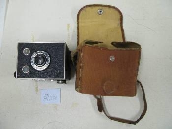 Tegund Kodak. Svört kassamyndavél í brúnni strigatösku með leðuról og smellum. Jón Bergsteinsson frá Ási í Fellum átti vélina og gaf gefanda. Jón er móðurbróðir gefanda.