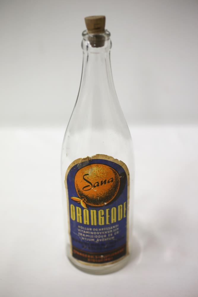 Flaska undan "Sana" orangade, hollur og hressandi vítamíndrykkur. Efnagerð Siglufjarðar H/F Siglufirði.