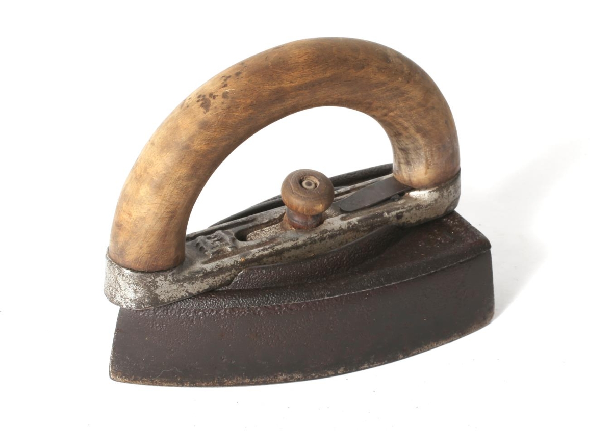 Úr þriggja járna setti. Hald og standur. Straujárn MA-1996-68a og b en standur merktur c. Úr eigu Hallberu Daníelsdóttur frá Gili í Norðfirði, tengdamóður Þorsteins Sigurðssonar læknis og ömmu gefanda.