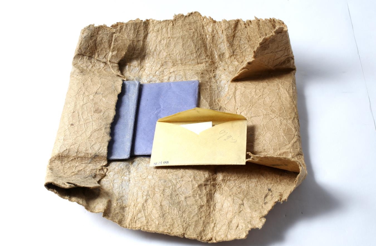 Silfurlitt, gullbrons. Litunarefni í fjórum deildum í bláum pappír, silfurlitum og ein í bláu umslagi. Allt vafið saman í dúk. Var notuð til gylla líkkistuskraut. Var í skáp Lárusar Eiríkssonar, smiðs á Breiðavaði.