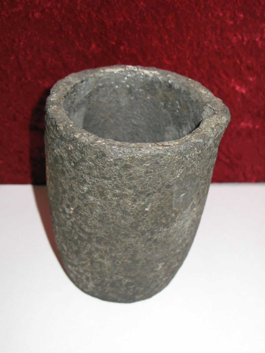 Dökkgrár forngripur úr steini. Steinninn er dökkur og bólóttur að utanverðu vegna hita. Grár að innanverðu. Notað til að bræða í málm yfir eldi. Tekið var á deiglunni með töngum og hellt af stút í mót. Fannst á bóndabæ í Svíþjóð, í skemmu sem var rifin af af nýjum eiganda, Íslendingi. Gefandi þáði deigluna af viðkomandi á ferðalagi sínu í Svíþjóð.