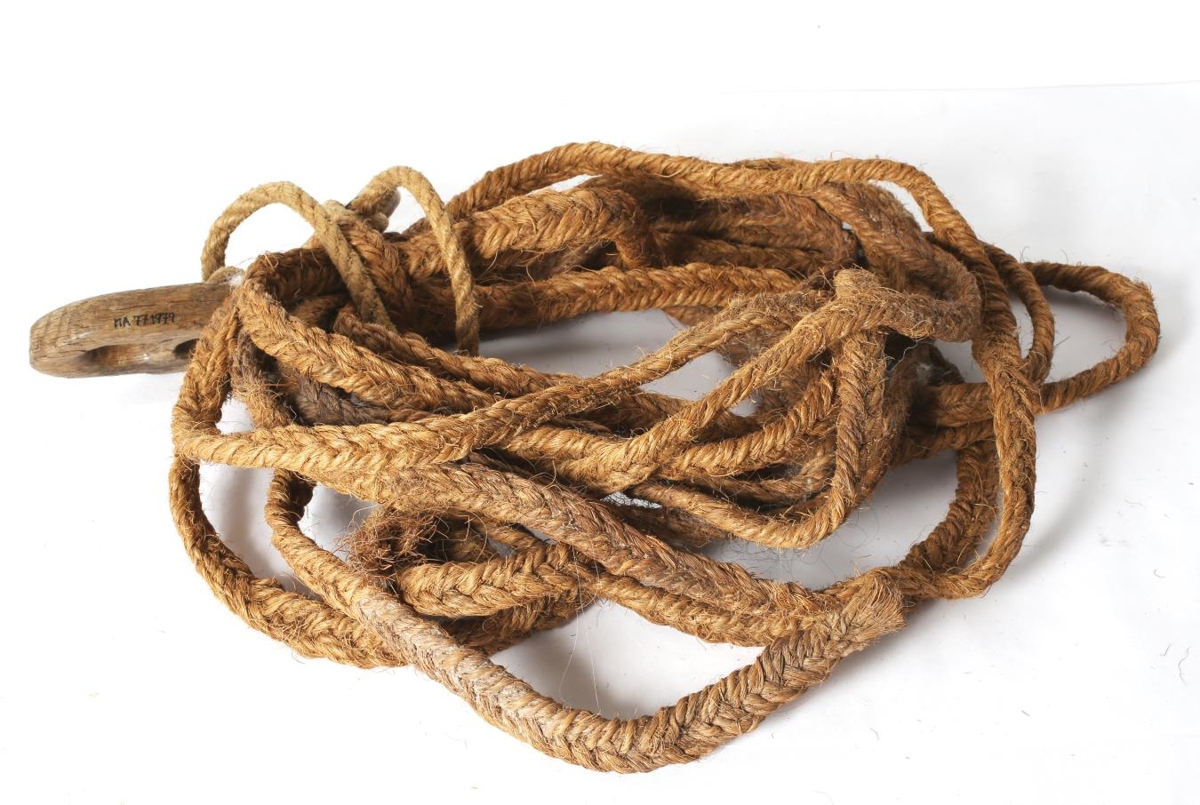 Hrosshársreipi með tré- og hornhögld. Hagldir brennimerktar "Hólmar". Úr búi Hans Beck, bónda á Kollaleiru í Reyðarfirði.