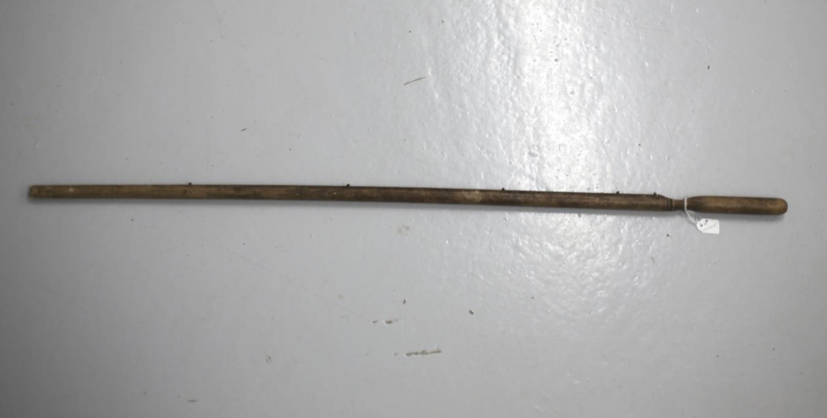 Sívöl mælistika úr tré. Með nöglum við tommu, spönn, fet og alin. Trúlega er þessi hlutur kominn úr Kaupfélaginu á Reyðarfirði. Gæti hafa verið flutt með verslunarhúsinu í Breiðuvík þegar það var flutt til Reyðarfjarðar (Tærgesen). Notað til að mæla álnavöru í verslun.
