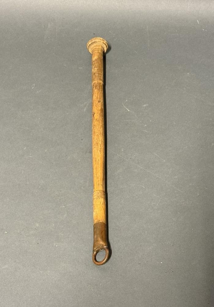 Trésvipa, rennd. Lengd 39 cm. Form að öllu eins og á silfurbúinni svipu. Er lökkuð og viðartegund óljós. Smíðuð af Þorsteini Jónssyni í Drangshlíðardal og er gjöf hans til Sigurgeirs.
