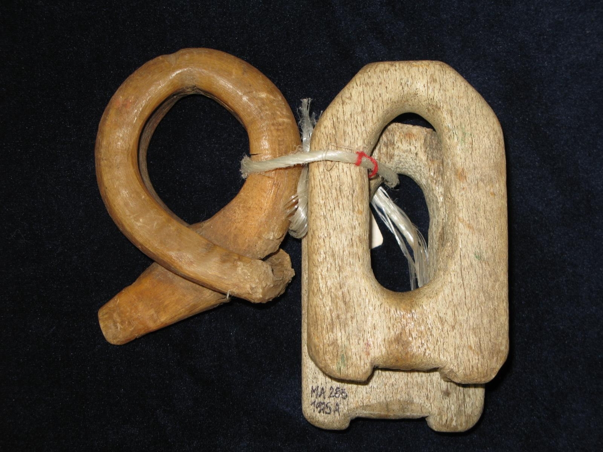 Hvalbeinshagldir tvær, með 1 stóru gati. Úr búi gefanda, Gísla Björgvins Jónssonar bónda á Geldingi og konu hans Sigurbjargar Erlendsdóttur. Giftarhögld, svolítið brotin, JóÁrS. = Jón Árnason bóndi á Ytri -Kleif. Munirnir eru úr búi gefanda, Björgvins Jónssonar bónda á Geldingi og konu hans Sigurbjargar Erlendsdóttur.