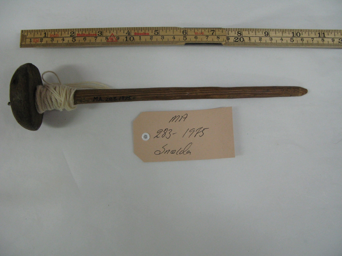 Snælda með tálguðum haus. Úr búi Sigurbjargar Erlendsdóttir á Geldingi (Hlíðarenda).