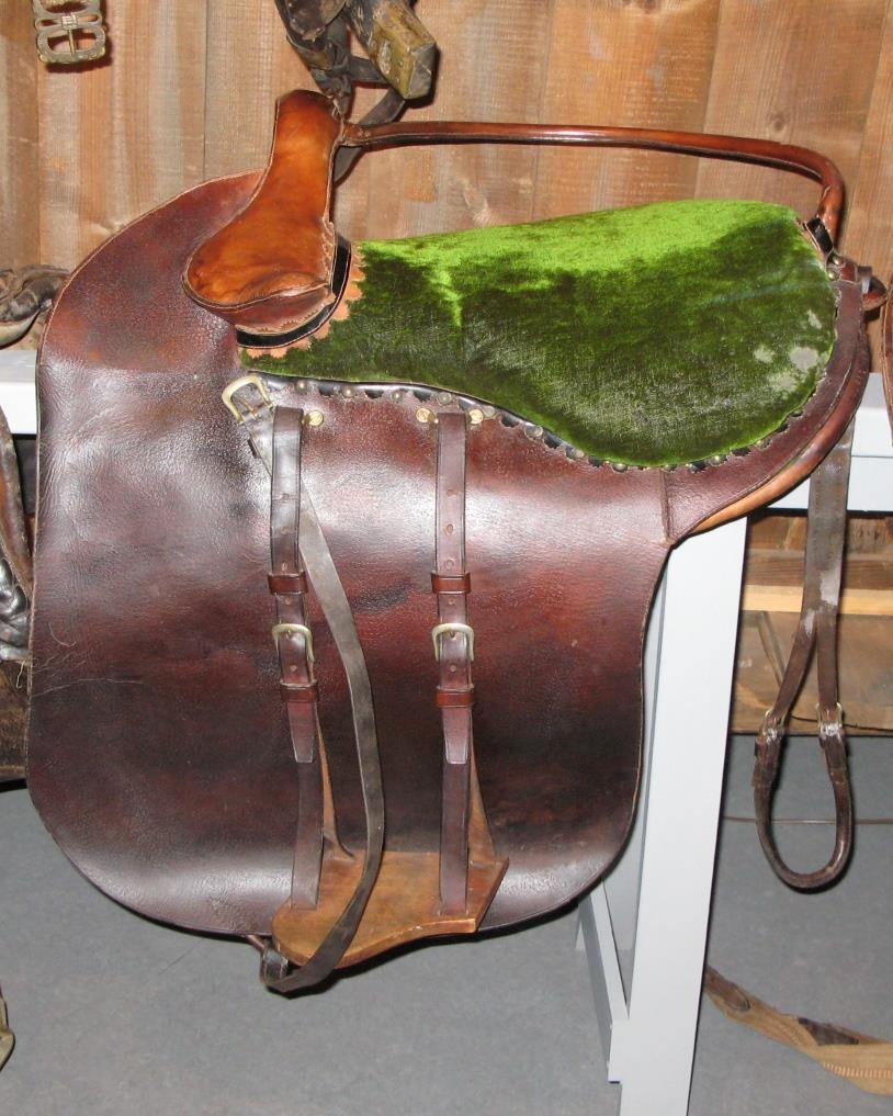 Söðullinn er hinn vandaðasti, sæti með grænu plussi. Söðulinn smíðaði Jón Guðmundsson, söðlasmiður í Hoffelli. Systir gefanda, Elísabet, átti söðulinn en hún dó ung. Söðlinum fylgir þverbrugðin gjörð MA-1975-124-2.