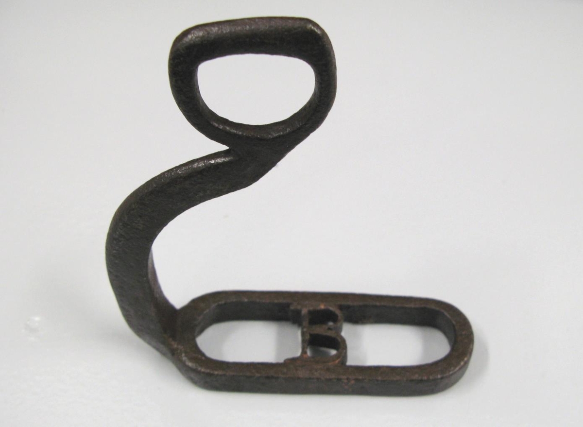 Opið ístað úr járni, með stafnum "B" smíðuðum í stigið. Smíðað handa Braga.