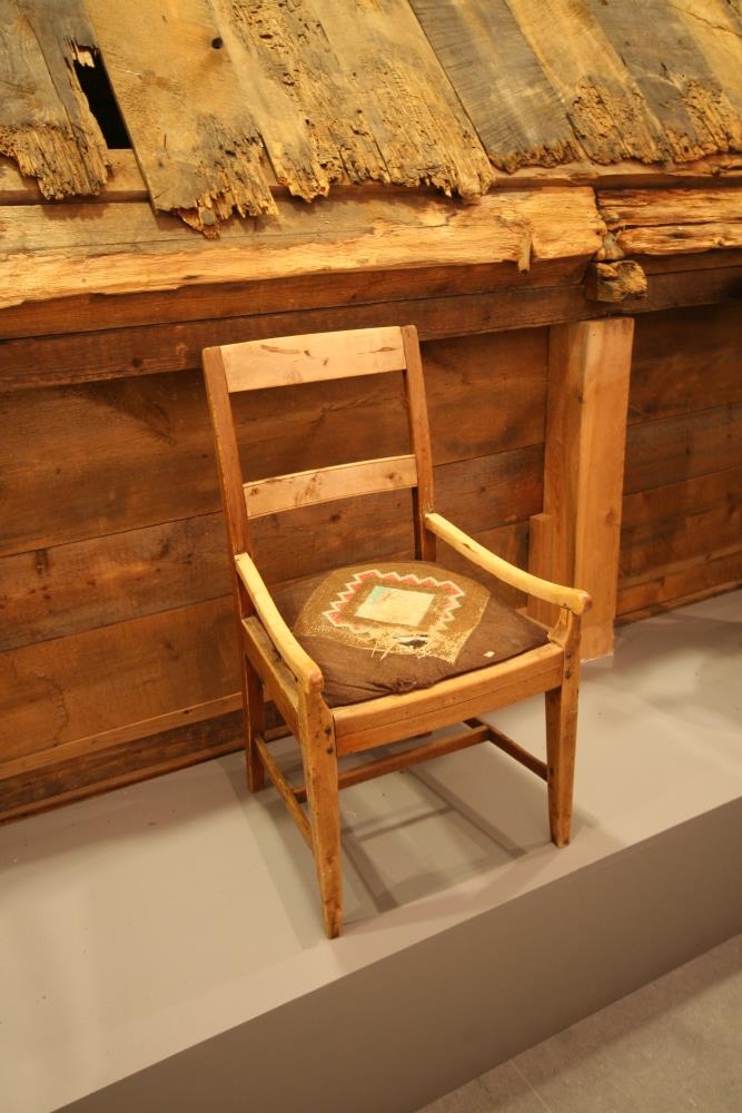 Stóll sem er að hluta til úr birki, en hinn hlutinn er að öllum líkinum úr furu (smíðaður upp). Setan er úr brúnum vefnaði en jafi er saumaður í tígul í miðju og síðan saumað í hann með brúnu, grænu og rauðu. Setan er mjög slitin og sést að hún er stoppuð með ull. Stóllinn er nelgdur með trénöglum og var í eigu Elísabetar Sigurðardóttur skv. skrá.