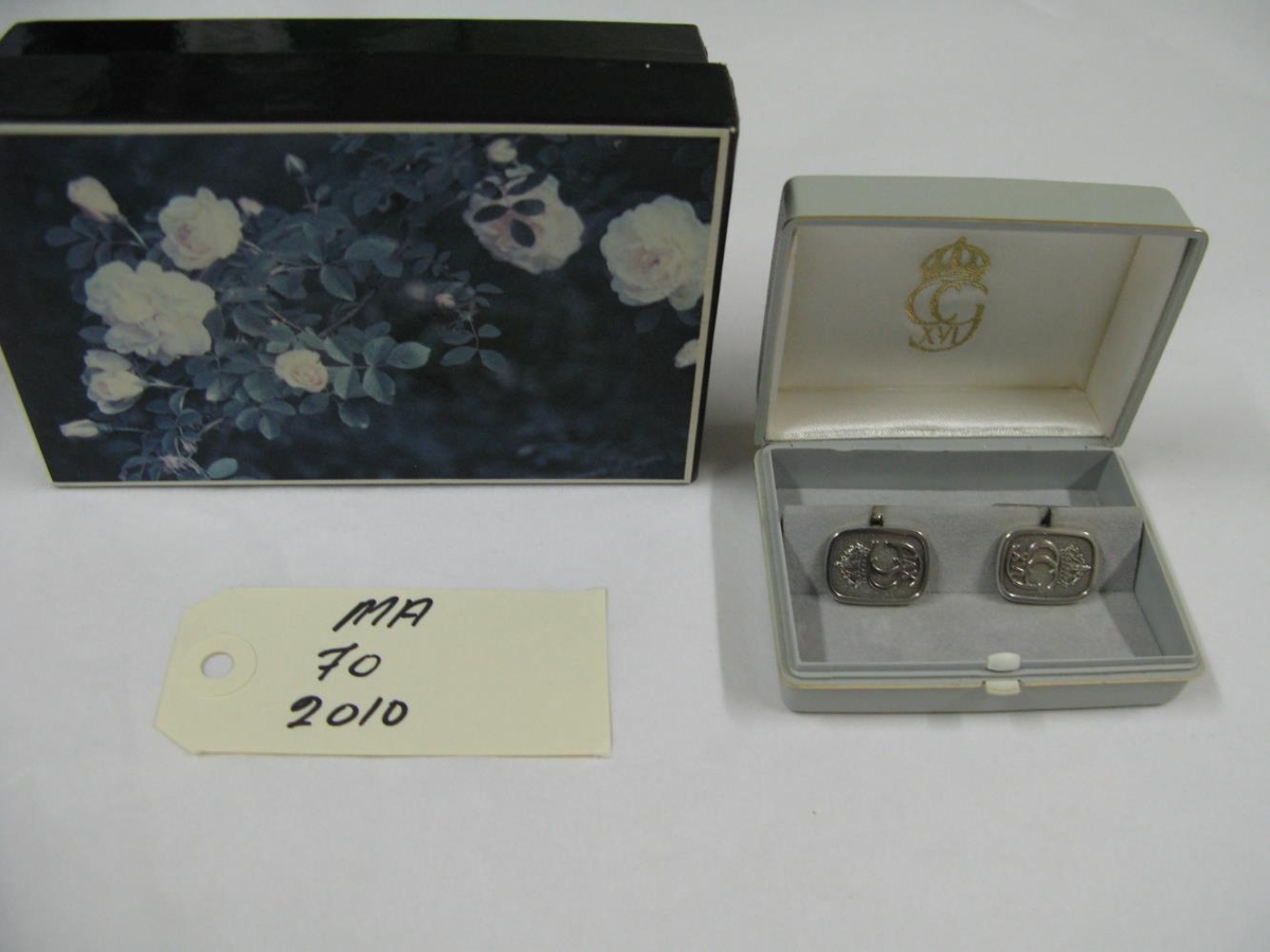 Eitt par ermahnappar úr silfri. Platan á á hnöppunum er heldur lengri en hún er breiðari og á henni er kóróna og stafirnir CG XVI. Þessa hnappa gaf Carl Gústaf Svíakonungur Hákoni Aðalsteinssyni þegar hann var leiðsögumaður konungs á hreindýraveiðum 31. ágúst 1989. Hákon keyrði honum um Fljótsdalsheiði á gömlum Dodge Weepon sem hann átti og eftir það var bíllinn alltaf kallaður "Konungslalli". Hnapparnir eru í gráum plastkassa sem aftur er í svörtum gjafakassa með mynd af hvítum rósum ofaná. Neðan á svarta kassanum er rauður merkimiði frá pennanum sem á stendur "220,09".