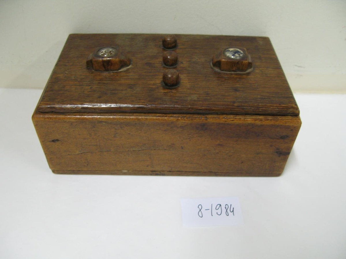 Kassi með töfralæsingu. Dökkbrúnn með þremur tökkum á loki. Læstur. Annar stóri takkinn á lokinu færður til að opna kassann. Tvö lítil leynihólf, eitt í hvorri langhlið innan í kassanum. Var í eigu Alberts Finnbogasonar. Innan á loki stendur skrifað með penna: "Frá Alberti Finnbogasyni, til Alberts Finnbogasonar, staddur í Auðsholti í ágústmánuði 1915".