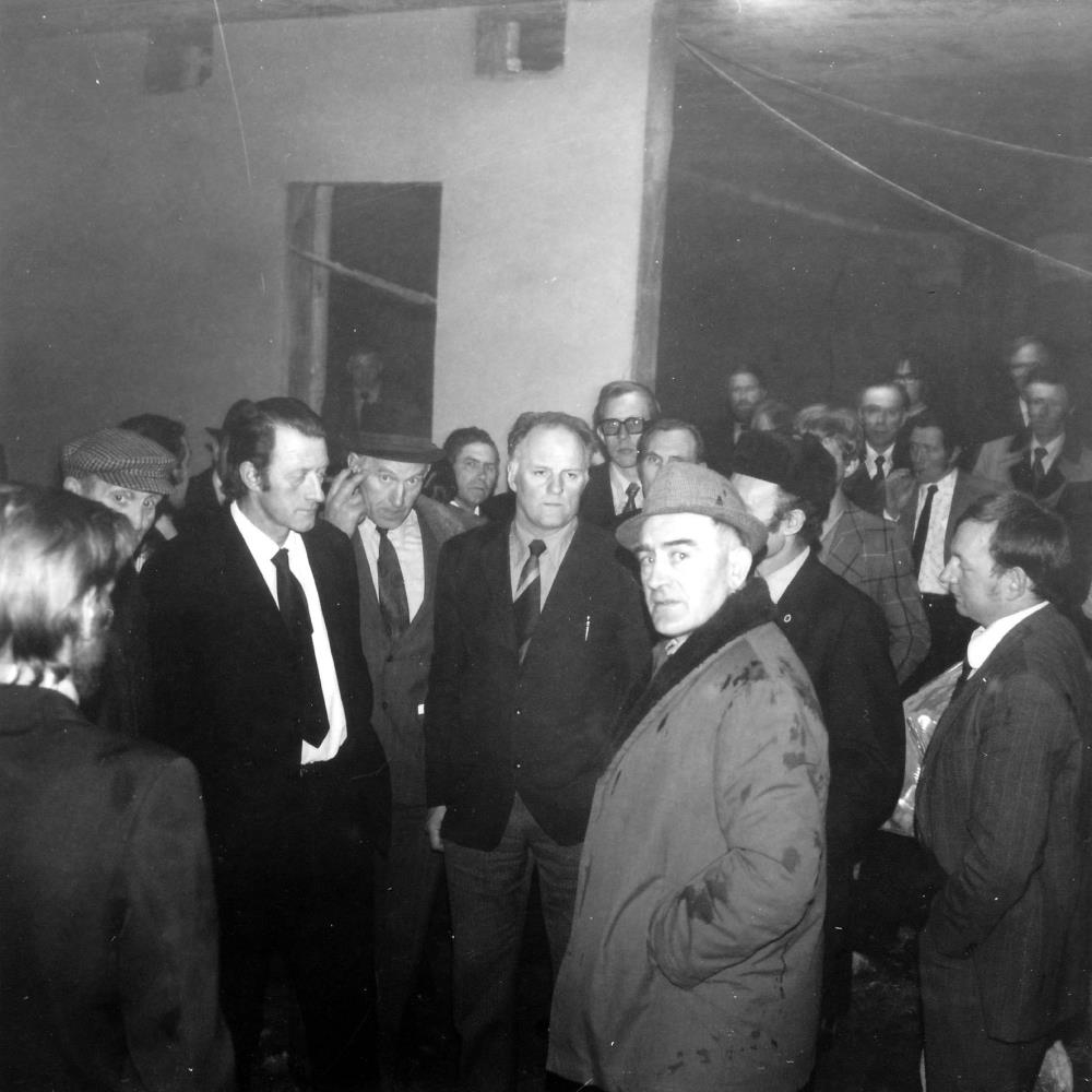 Bændur á aðalfundi 1975 skoða mjólkursamlag í byggingu.