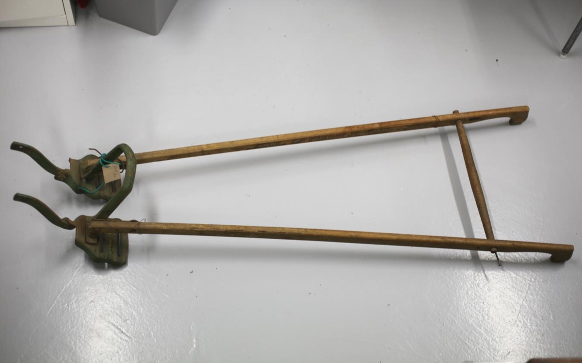 Tréskaft og ýmsir mismunandi fylgihlutir. Járn á hvorum enda skaftsins eru járnstykki sem síðan eru tengd saman með borga. Járnstykkin eru með tveimur raumum og síðan gengur járn fram úr þeim sem hafa átt að festast í eitthvað. Á þessu tæki stendur "Plantet Jr. Reg. U.S Gff. Regisytered Trademark Plantet Jr. Made in The United States of America. Marque Deposee Mind. Rgtrde No. 17269 de8de octuber 1918 Marca de Fabrica." Til ýmiskonar jarðvinnslu.
