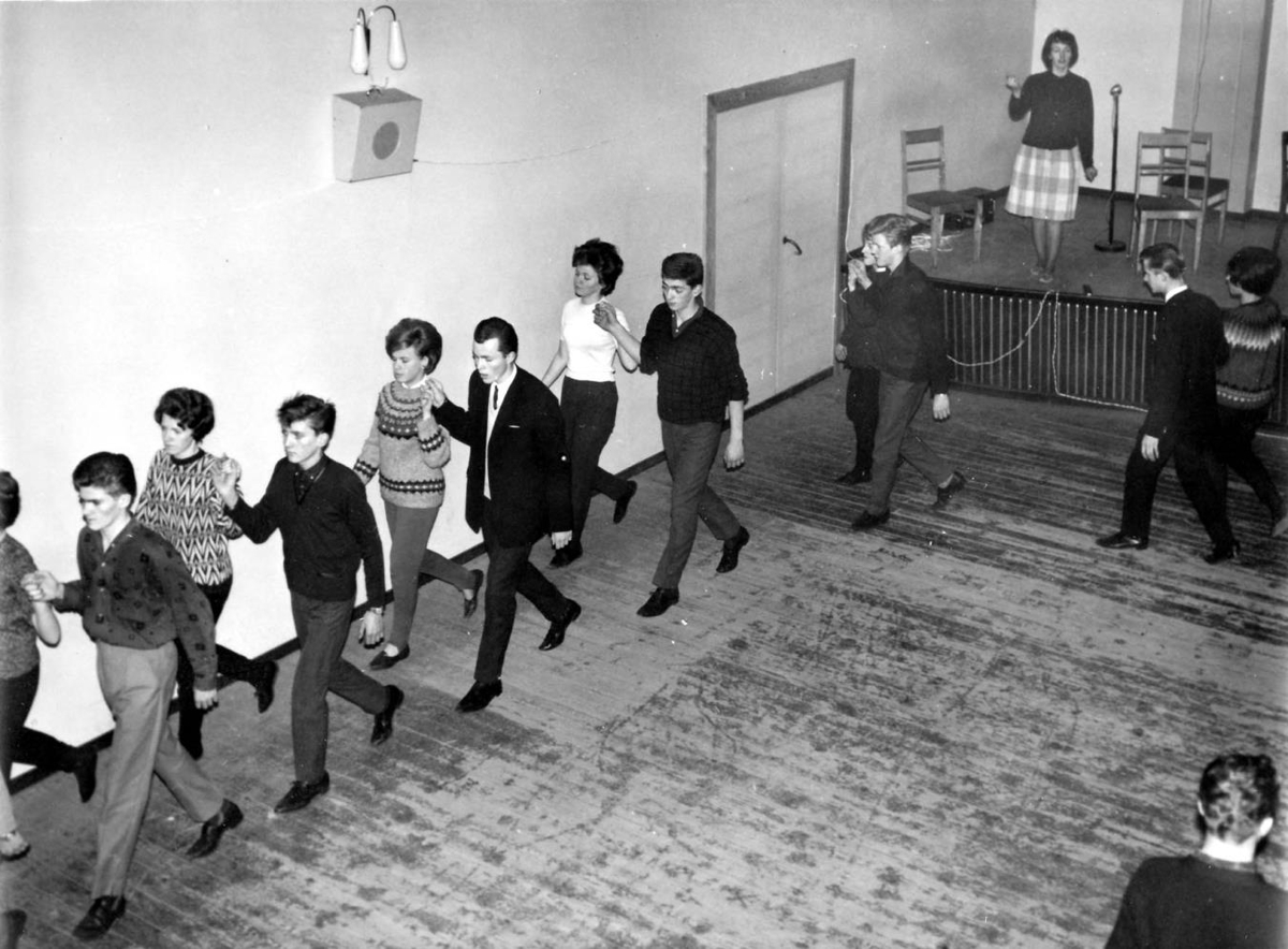 Dynheimar Hafnarstræti 73, danskennsla. Margrét Rögnvaldsdóttir danskennari á sviði.