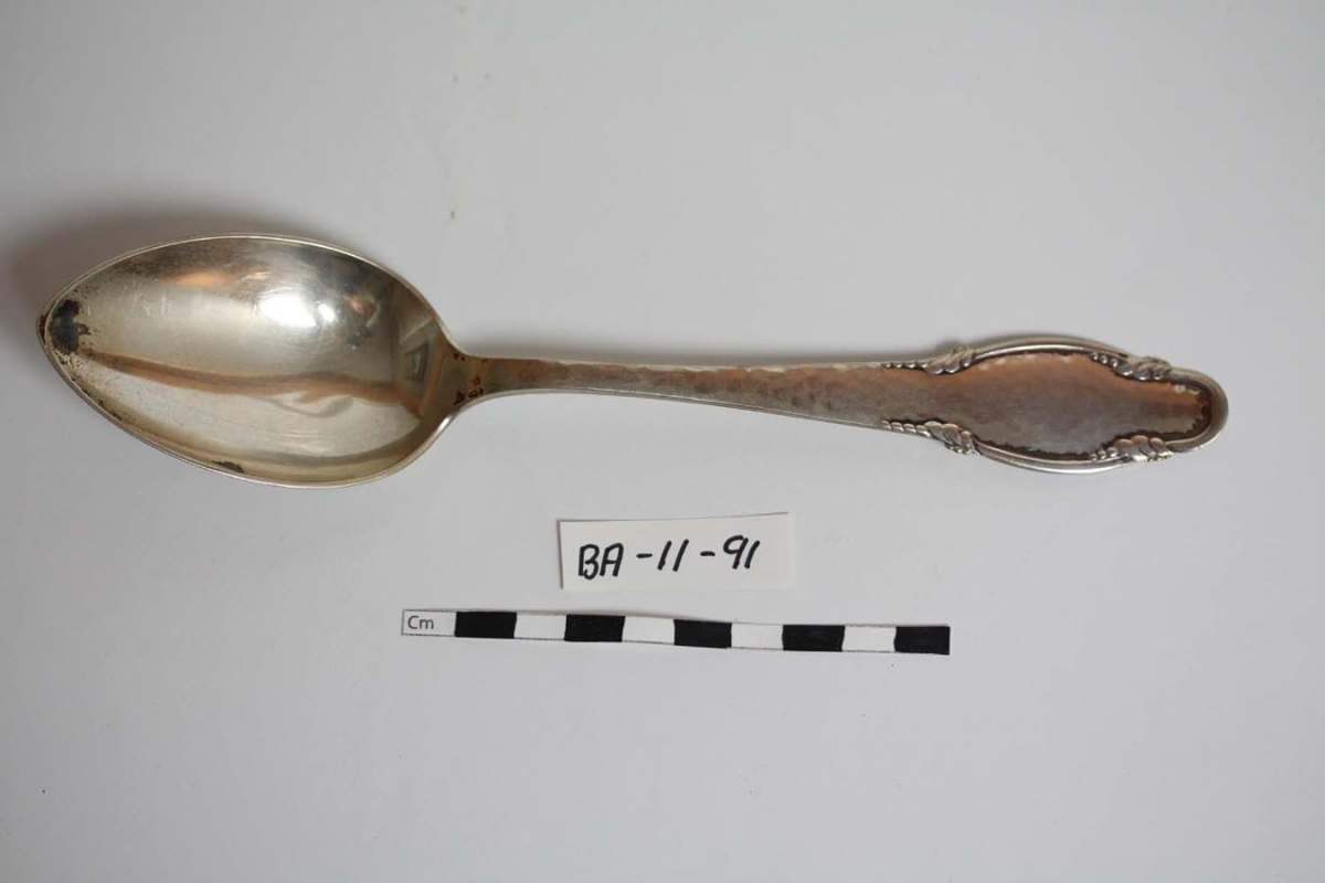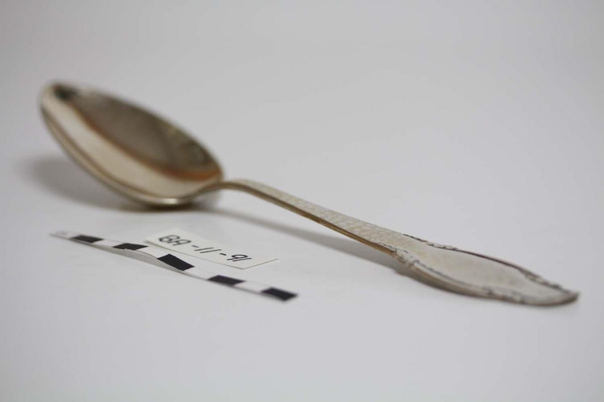 Silfurskeið með áletruninni "Stína" á bakhlið.