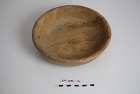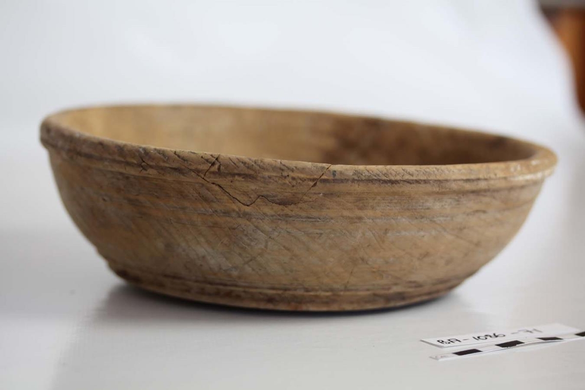 Lítil tréskál, rennt efst og á botninum, um 19 cm í þvermál.