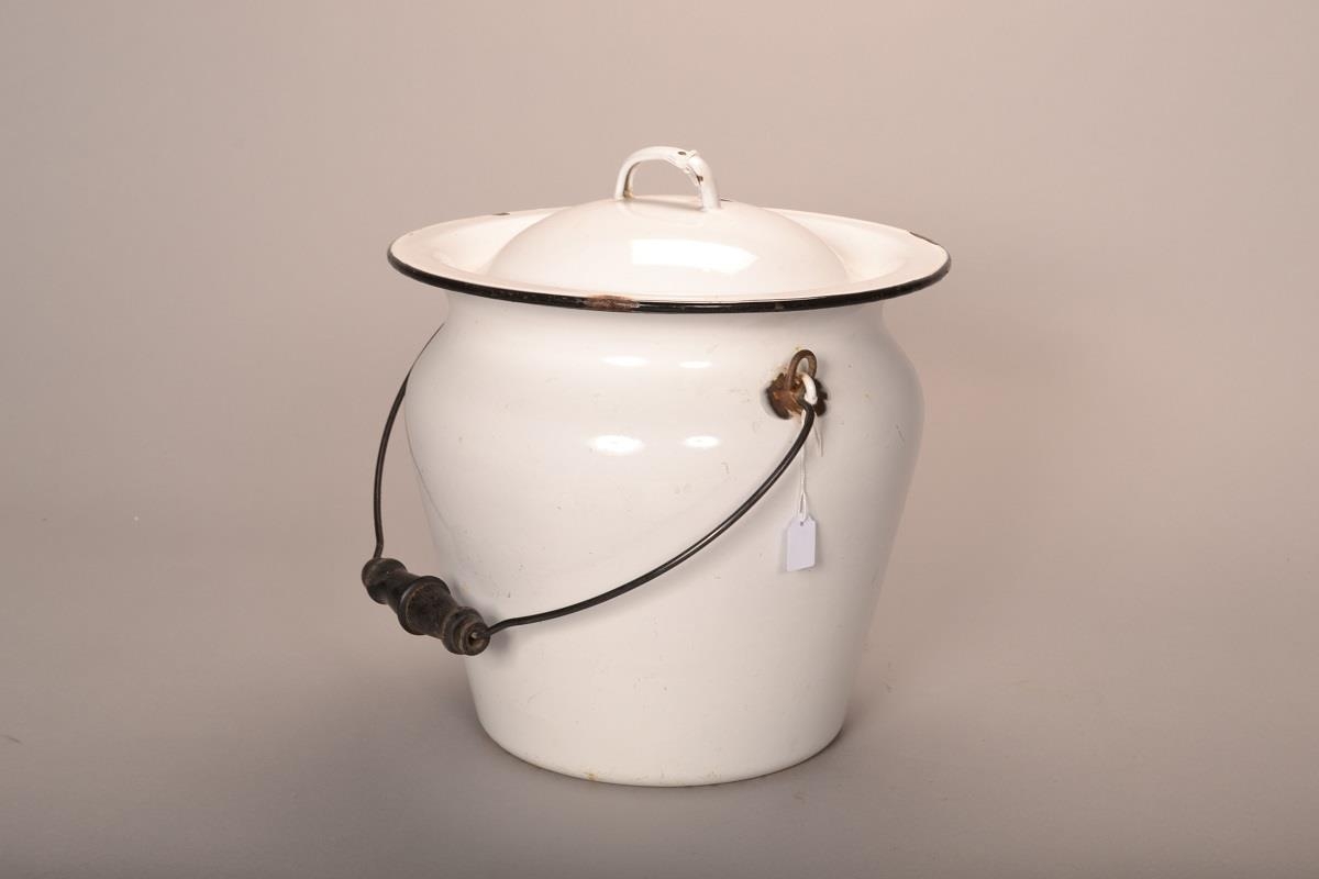 Hvít, emenleruð fata með loki. Var notuð undir súrmat,