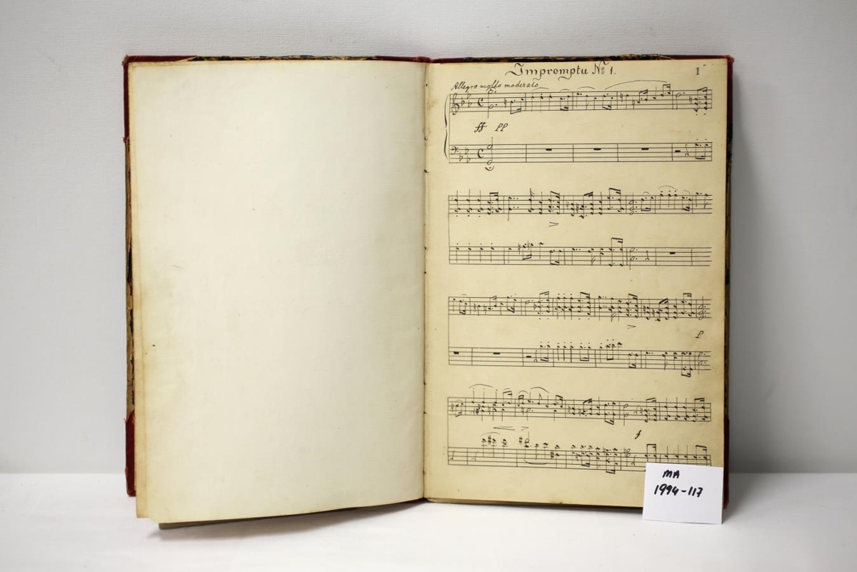 Innbundin nótnabók með handskrifuðum nótum fyrir orgel og píanó og er ártalið 1909. Vigfús skrifaði nóturnar og batt bókina sjálfur inn. Úr eigu Vigfúsar Sigurðssonar frá Egilsstöðum í Fljótsdal (f.03.08.1880, d.13.09.1943).
