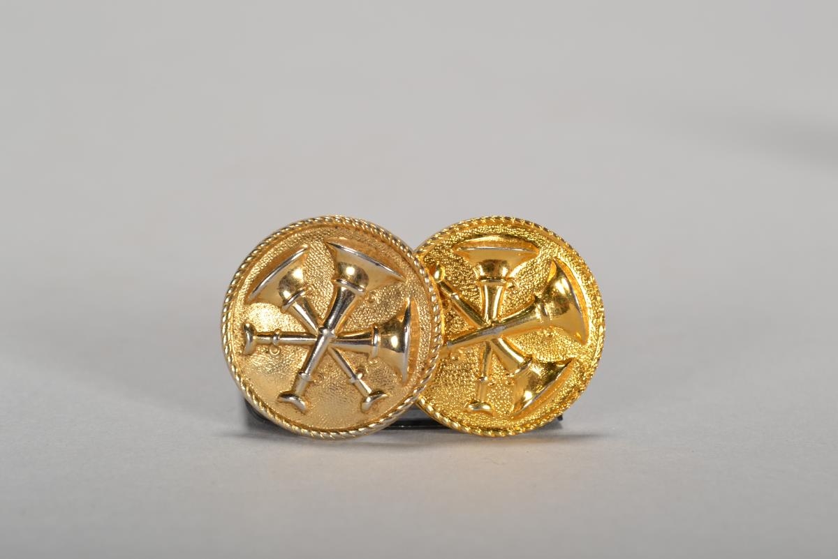 Gylltir hnappar með ágrafinni mynd af brunalúðrum