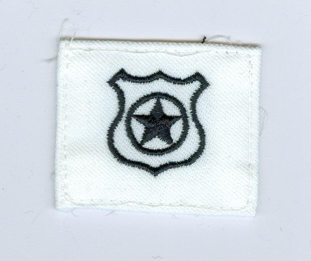Lítið hvítt merki með mynd af stjörnu inní hring