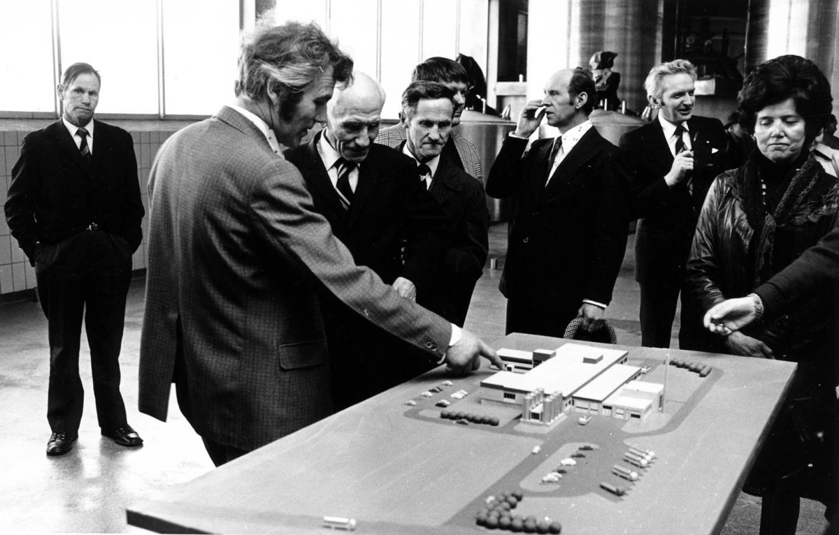 Bændur skoða likan af nýja Mjólkursamlagi KEA.