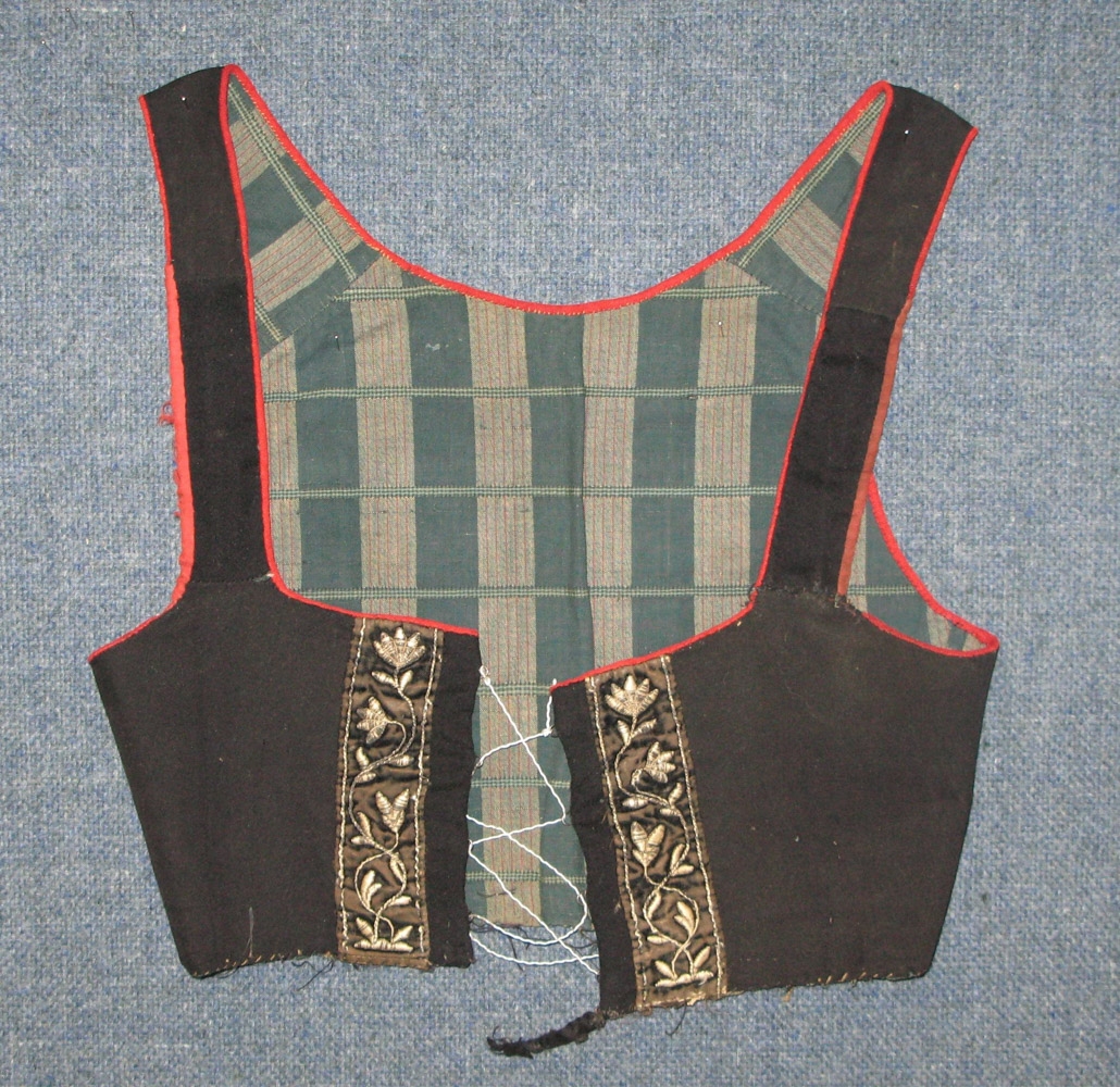 19. aldar bolur, úr svörtu klæði. Rauðar bryddingar í hálsi og ermaopum. Svartir balderaðir borðar á börmunum með gylltri baldýringu. Kræktur með fimm krókum (ekki myllum). Fóðraður með bláköflóttu. Á baki og axlasaumum eru þrílitar, knipplaðar leggingar. Úr búi Þóreyjar Brynjólfsdóttur frá Skeggjastöðum eða Jarþrúðar Einarsdóttur, sama stað. Upprunninn úr Fljótsdal, að því að talið er.